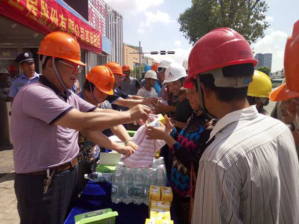 在慰問活動中,劉厚純書記每到一處都向堅守崗位的一線員工表示親切慰問,與項目經(jīng)理進行交談,詳細了解項目施工情況和工人的生活情況。他要求各項目部要切實關心一線作業(yè)人員的安全和健康,采取有效措施,合理調(diào)整工作時間,確保將防暑降溫工作落到實處,確保員工身體健康,確保生產(chǎn)安全。