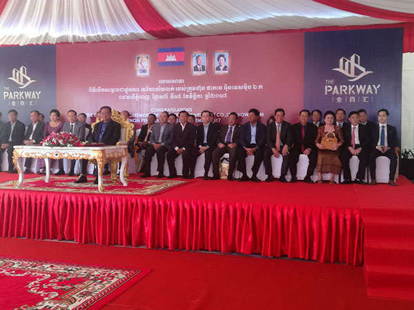 11月18日,萬眾期待的柬埔寨金百匯銷售中心及樣板房開放盛典,在金百匯售樓部華麗綻放,柬埔寨副總理兼內(nèi)政部部長蘇慶親王閣下和金邊市長親臨現(xiàn)場,達(dá)欣集團(tuán)馬和軍董事長一行、百匯集團(tuán)林財(cái)通勛爵、林寶庭總經(jīng)理與來自25家當(dāng)?shù)刂襟w代表和眾多貴賓等應(yīng)邀共同見證這一劃時(shí)代地標(biāo)作品的盛放。