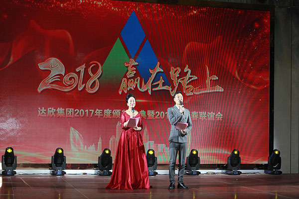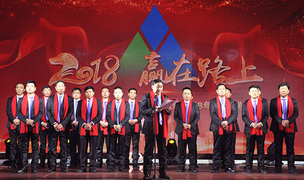 集團高管們在澎湃的“我們走在大路上”聲中激情登場,公司董事長馬和軍進行了致辭答謝。他回顧了集團一年來所取得的輝煌成績,感謝社會各界及全體達欣人的努力,并對公司的未來之路描繪了新的發(fā)展藍圖;接著,縣委書記顧國標(biāo)發(fā)表講話, 他指出,作為全縣經(jīng)濟社會發(fā)展的重要板塊,我縣建筑業(yè)總體發(fā)展態(tài)勢良好,總量和質(zhì)量穩(wěn)步提升。作為“海安建筑鐵軍”中的一支老牌“勁旅”,達欣集團的市場競爭力和品牌影響力不斷提升,他對公司2018年工作提出了新的希望,寄語未來集團要進一步深化企業(yè)體制機制創(chuàng)新,全面加快產(chǎn)業(yè)升級步伐,全面實施“科技強企”戰(zhàn)略,搶抓機遇,精準(zhǔn)定位,打造達欣更加輝煌的未來!
