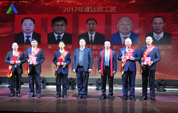集團黨委書記劉厚純宣讀了表彰決定, 縣領(lǐng)導(dǎo)為獲得集團2017年度的項目標(biāo)桿、達欣工匠、青年標(biāo)兵等先進代表進行了頒獎。
