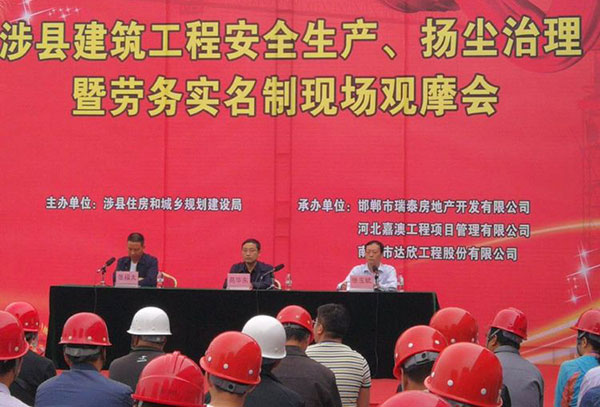 住建局局長張玉斌對我公司在御湖天城建筑安全施工、揚塵整治暨勞務(wù)實名制的做法,給予高度肯定。 他表示,我們公司在安全管理、揚塵治理及勞務(wù)實名制的做法為涉縣其他各單位的現(xiàn)場安全管理、揚塵治理及有效地維護農(nóng)民工權(quán)益指明了方向和途徑。