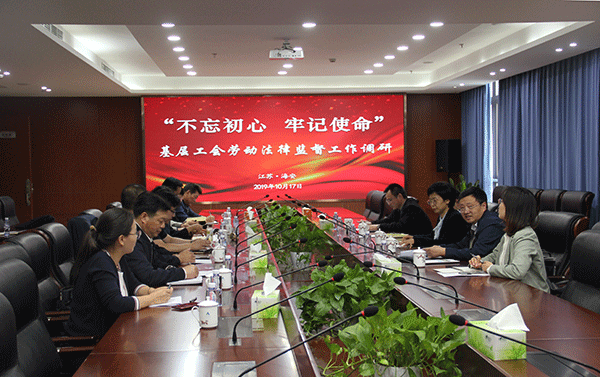 江蘇省總工會法律工作部主任科員劉為偉、 江蘇省總工會法律工作部副主任科員趙萌萌、 南通市總工會主席助理陳志祥、南通市總工會法律工作部副部長龔亞樂陪同調(diào)研。