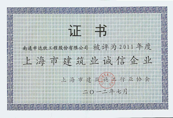 根據(jù)《上海市建筑施工企業(yè)誠(chéng)信建設(shè)行業(yè)評(píng)價(jià)試行辦法》和《上海市建筑施工企業(yè)綜合實(shí)力排名辦法》、2011年度企業(yè)誠(chéng)信建設(shè)相關(guān)考核、《指標(biāo)體系及評(píng)分標(biāo)準(zhǔn)》等內(nèi)容,第一工程公司在經(jīng)過(guò)申報(bào)、初審、征詢主管部門意見(jiàn)、上網(wǎng)公示四個(gè)環(huán)節(jié)后,最終由上海市建筑施工企業(yè)誠(chéng)信建設(shè)行業(yè)評(píng)價(jià)委員會(huì)審定通過(guò),榮獲2011年度“上海市建筑業(yè)誠(chéng)信企業(yè)”稱號(hào)。這是達(dá)欣股份自易名以來(lái)連續(xù)五年獲此殊榮。此外公司還被評(píng)為2011年度“上海市建筑施工企業(yè)綜合實(shí)力進(jìn)步獎(jiǎng)”稱號(hào),承建的萬(wàn)寶國(guó)際廣場(chǎng)項(xiàng)目榮獲2011年度上海市“白玉蘭”優(yōu)質(zhì)工程。