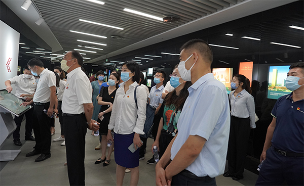 領(lǐng)導(dǎo)們一行來到企業(yè)展示中心,觀看了集團(tuán)黨建專題片---紅旗鐵軍,詳細(xì)聆聽了集團(tuán)黨委開展的四項(xiàng)融合、四微黨建、三項(xiàng)目標(biāo)的“四四三”黨建工作法等內(nèi)容,了解了具有達(dá)欣特色的“工地黨旗美如畫”黨建工作新舉措、新理念。隨后,領(lǐng)導(dǎo)們還參觀了馬和軍勞模創(chuàng)新工作室黨支部,聽取了集團(tuán)建筑工地上流動(dòng)黨員立足本職崗位,發(fā)揮帶頭模范作用,提升項(xiàng)目質(zhì)量,助推集團(tuán)高質(zhì)量發(fā)展的情況介紹。