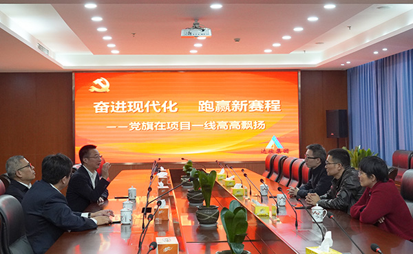11月19日,南通市委黨史學(xué)習(xí)教育第八巡回指導(dǎo)組副組長王鵬一行,在海安市宣傳部副部長徐勇、胡集街道黨工委書記孫堅(jiān)的陪同下,調(diào)研集團(tuán)“黨旗在項(xiàng)目一線高高飄揚(yáng)”活動(dòng)開展情況。集團(tuán)黨委書記劉厚純參加活動(dòng)。