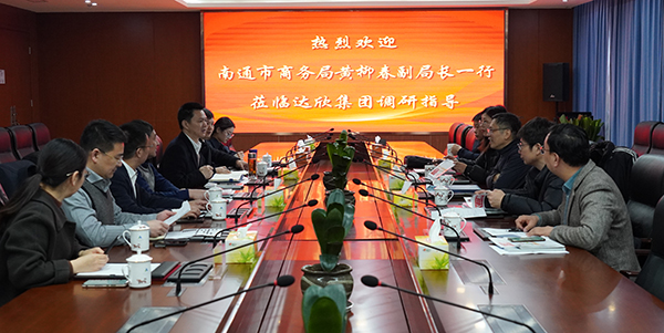 2月24日上午,南通市商務局黨組成員、副局長黃柳春率隊蒞臨達欣集團調(diào)研,海安市商務局副書記、副局長史霞兵,集團董事長馬和軍、黨委書記劉厚純、常務副總經(jīng)理王邦國等陪同。