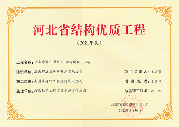 近日,從河北省住房和城鄉(xiāng)建設(shè)廳傳來喜訊,集團(tuán)邊各寨棚戶區(qū)改造項(xiàng)目、唐山謝家莊項(xiàng)目、邯鄲市雞澤縣多館合一等五項(xiàng)目榮獲河北省結(jié)構(gòu)優(yōu)質(zhì)工程。