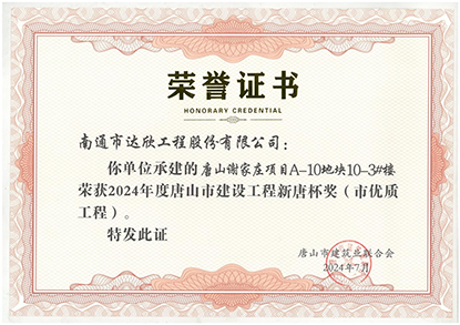 近日,由第六工程公司承建的唐山謝家莊項目A-10地塊10-3#樓、唐山謝家莊項目A-14地塊14-3#樓、14-5#樓榮獲“2024年度唐山市建設工程新唐杯獎(市優(yōu)質(zhì)工程)”。