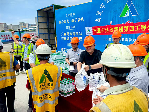 正值盛夏,烈日炎炎,施工現(xiàn)場的工友們不懼高溫,堅(jiān)守崗位,全力推進(jìn)項(xiàng)目建設(shè)進(jìn)度。工程公司總經(jīng)理傅海榮詳細(xì)詢問工友們的工作和生活情況,對(duì)大家在高溫下辛勤付出表示衷心感謝。隨后,傅海榮親自將精心準(zhǔn)備的防暑降溫禮品分發(fā)到每一位工友手中,為工友們在炎炎夏日送去一份貼心的關(guān)懷。