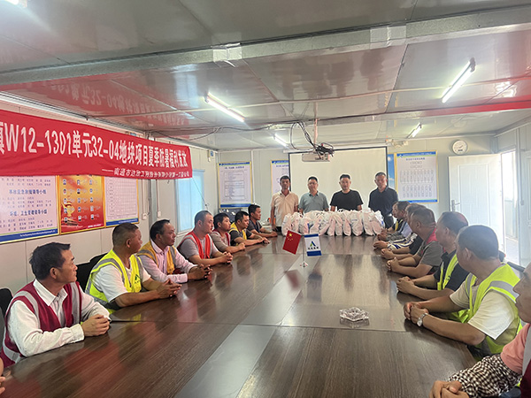 活動(dòng)現(xiàn)場(chǎng),第一工程公司總經(jīng)理倪志榮、副總經(jīng)理朱國(guó)華、安全科科長(zhǎng)姜德穩(wěn)、項(xiàng)目經(jīng)理周進(jìn)均,將防暑降溫物資逐一發(fā)放到職工手中。此舉不僅為職工提供了實(shí)用保障,更傳遞了公司以人為本的發(fā)展理念。