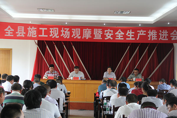 8月13日,全縣施工現(xiàn)場觀摩及安全生產(chǎn)推進(jìn)會在我公司舉行,縣建筑工程管理局賈伯根局長、徐祥穩(wěn)書記、儲祥文副局長、各區(qū)鎮(zhèn)建管站及全縣40多家企業(yè)的安全負(fù)責(zé)人和安全科長參加活動(dòng)。